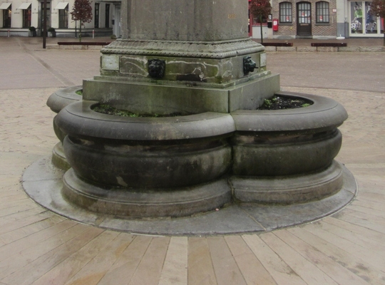 Lang geleden werkte de fontein nog en spuwden de vier leeuwenkoppen water in de waterbakken onderaan het standbeeld van Lamoraal Graaf van Egmont. Op een gegeven moment kwam alles droog te staan en veel later bij een bezoek van wijlen Oost-Vlaams gouverneur André Denys aan de stad werden er bloemen in de waterbakken geplant. Rond het standbeeld werden toen ook kleine sparren voorzien.