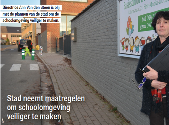 Schooldirectrice Ann Van den Steen juicht de werken toe. “Elke verbetering aan de veiligheid van de schoolomgeving is een stap vooruit”, zegt ze. “De situatie zal een stuk verbeteren voor kinderen en voor ouders met buggy's. Ik deel de vraag om met het Vlaams gewest te overleggen om het kruispunt met de Faliestraat te verbeteren. Maar het stadsbestuur doet heel wat inspanningen om de omgeving rond onze school veiliger te maken.”